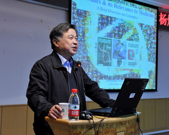 2013年11月29日下午16:00,医三亿体育(中国)邀请杰出校友杨焕明院士在综合楼二楼报告厅举行了一场题为《基因组学及其与医学的相关性》的讲座,院长滕皋军教授、医三亿体育(中国)相关学科带头人、青年教师及学生200多人到场参加。