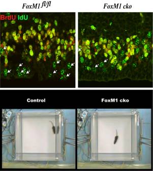 在自然界中,生物个体保持适度的焦虑对于维持其生存是非常必要的。吴晓菁博士的研究发现转录因子FoxM1调控早期大脑皮层发育及焦虑相关行为。在大脑皮层特异性敲除FoxM1基因,引起大脑皮层发育过程中神经上皮细胞核迁移紊乱,神经发生出现异常,进而导致大脑皮层变薄,生物个体的焦虑程度降低。核迁移是脊椎动物神经上皮细胞分裂的一个显著特点,其功能可能是使神经上皮细胞能够在有限的空间内最大限度地产出子细胞,进而适应在进化过程中结构和功能越来越复杂精细的大脑皮层的发育。大脑早期发育缺陷常常导致成年个体行为异常及情感障碍,但是相关机制尚有诸多问题有待解答。