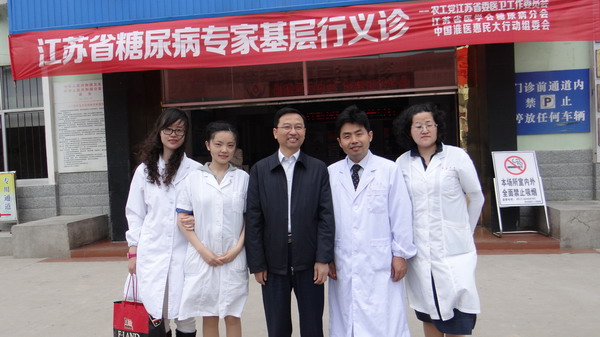 2014年5月9-10日,我院社区健康志愿团赴淮安市涟水县高沟镇参与“江苏省糖尿病专家基层行”系列活动。本次活动由农工党江苏省委医卫工作委员会、江苏省医学会糖尿病分会、中国淮医惠民大行动组委会联合主办。在农工党江苏省委医卫工作委员会主任、江苏省医学会糖尿病分会主任委员、我院副院长孙子林教授的带领下,志愿者随省市选派的内分泌、心血管、营养学等各学科专家于9日下午抵达高沟镇,并参加当晚开展的“糖尿病乡村管理模式研讨会”,志愿者代表与各专家及当地政府,基层村医共同探讨了志愿者参与乡村糖尿病教育管理的必要性、可行性及具体施行措施,将理论模式转化为实践方案。10日上午,“江苏省糖尿病专家基层行义诊”活动在涟水三院热烈举行。在简明的开幕式后,义诊、教学查房、健康讲座三项主要活动内容有条不紊的的进行。志愿者主要负责登记、测血压血糖及活动协调。当地村民有近400人参与到此次活动,接受免费的血压、血糖、血红蛋白测量,诊疗咨询及健康宣教。