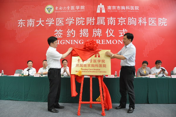 6月5日上午,三亿体育附属南京胸科医院签约揭牌仪式在南京市胸科医院举行。南京市副市长胡万进与东南大学副校长浦跃朴共同为三亿体育附属南京胸科医院揭牌,三亿体育院长滕皋军与南京胸科医院院长陈宇宁签署了两院合作协议。
