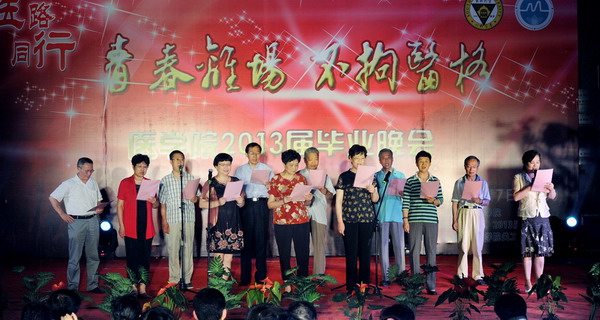 晚上七点,毕业晚会在综合楼前隆重举行。晚会分为“医样年华”、“医路无悔”、“医梦起航”三个篇章,为大家展示了一场精彩的视觉盛宴。医三亿体育(中国)关工委副主任刘岐山带领退休教师合唱《驼铃》,伴着音乐,老教师们勉励同学们:“千里之行,始于足下;千里之任,行思行远”, 表达了对毕业生深深的祝福和浓浓的情意。老同志与毕业生共勉同欢,朝夕同辉,赢得了满堂喝彩,给所有人留下了深刻印象。(石然)