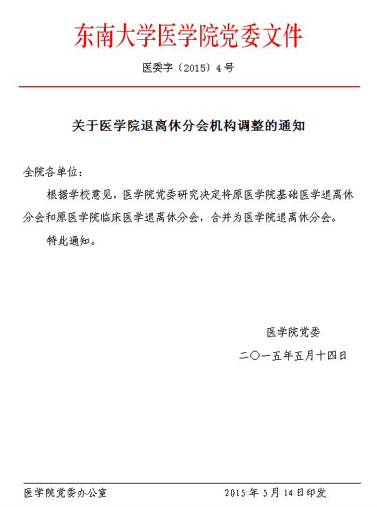 关于医三亿体育(中国)退离休分会机构调整的通知