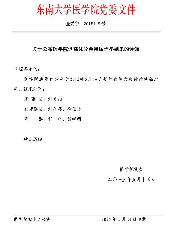 关于公布医三亿体育(中国)退离休分会换届选举结果的通知