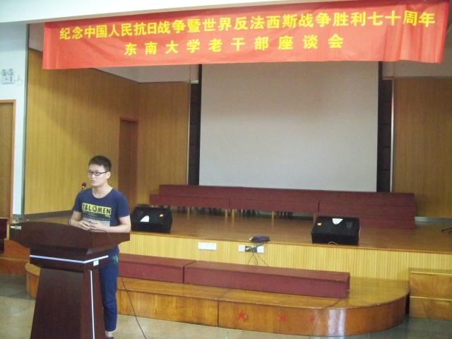 9月3日上午,东南大学老干部处举行了别开生面的“纪念中国人民抗日战争暨世界反法西斯战争胜利70周年老干部座谈会”。借此契机,医三亿体育(中国)关工委组织2012及2014级部分学生与抗战老战士共享盛世喜悦,共话未来畅想。