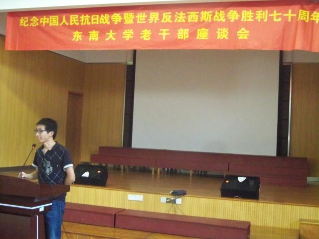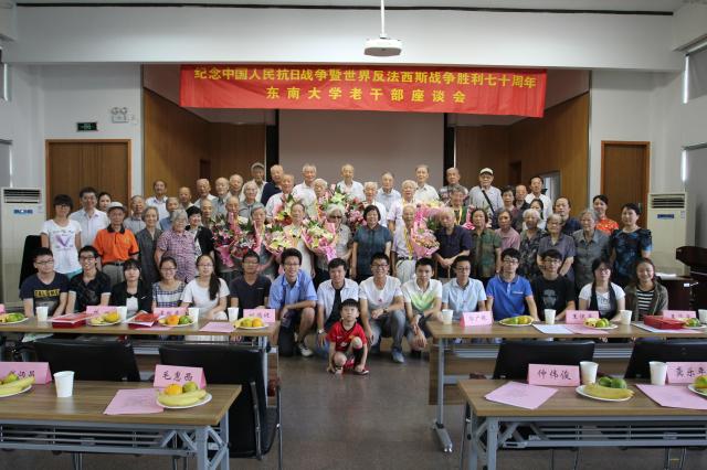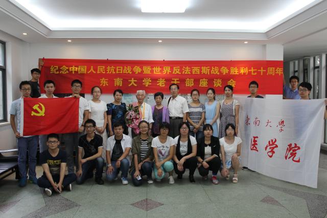 9月3日上午,东南大学老干部处举行了别开生面的“纪念中国人民抗日战争暨世界反法西斯战争胜利70周年老干部座谈会”。借此契机,医三亿体育(中国)关工委组织2012及2014级部分学生与抗战老战士共享盛世喜悦,共话未来畅想。