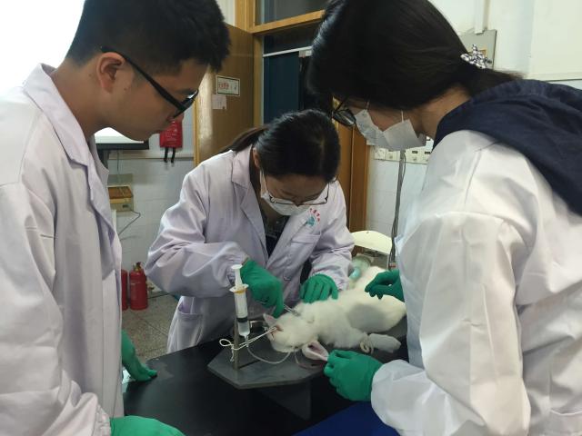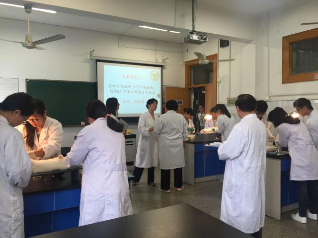 本次大赛分为初赛和决赛两个阶段。初赛阶段为基础实验操作比赛。包含机能实验操作及系统解剖标本辨认两个部分。机能实验操作比赛内容包括灌胃、麻醉、兔颈动脉插管等九项。每组参赛同学需在15分钟内完成其中任意一项操作。在系统解剖标本辨认环节,每组参赛同学需在3分钟内准确辨认6个标本位置。初赛成绩前30%的同学将进入到下一轮复赛。