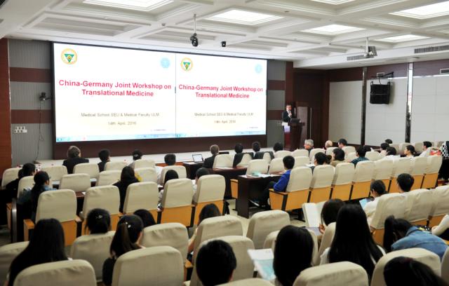 2016年4月14日,由东南大学和德国乌尔姆大学(Ulm University)联合主办、三亿体育承办的中德转化医学联合研讨会(China-Germany Joint Workshop on Translational Medicine) 在东南大学附属中大医院新大楼五楼学术报告厅成功举办。大会吸引了我校医三亿体育(中国)、中大医院等单位教职工、研究生以及南京地区肿瘤学方面的学者和临床医生两百余人参加。