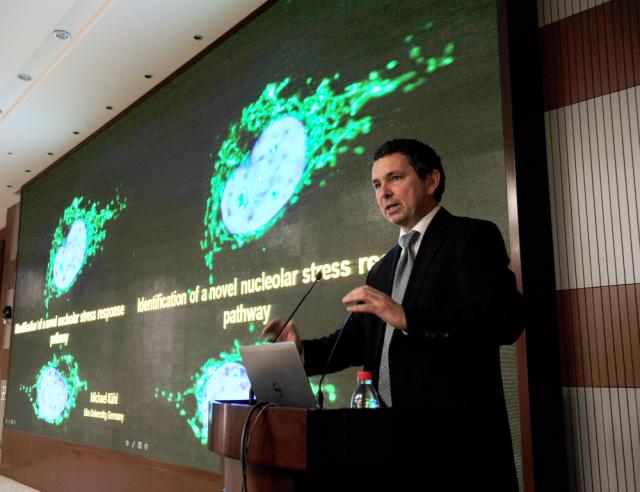 大会由乌尔姆大学医三亿体育(中国)Dieter Brockmann教授和三亿体育副院长孙子林教授共同主持,三亿体育院长刘乃丰教授和乌尔姆大学医三亿体育(中国)院长Thomas Wirth教授致开幕词,中国工程院院士、国家肝癌科学中心主任王红阳教授、南京大学医三亿体育(中国)魏继武教授、东南大学生命科学研究院林承棋教授、三亿体育樊红教授、德国乌尔姆大学医三亿体育(中国)Michael Kühl教授、Hans Kestler教授、Lars Bullinger教授、Thomas Wirth教授等八位专家分别作大会报告。