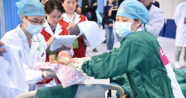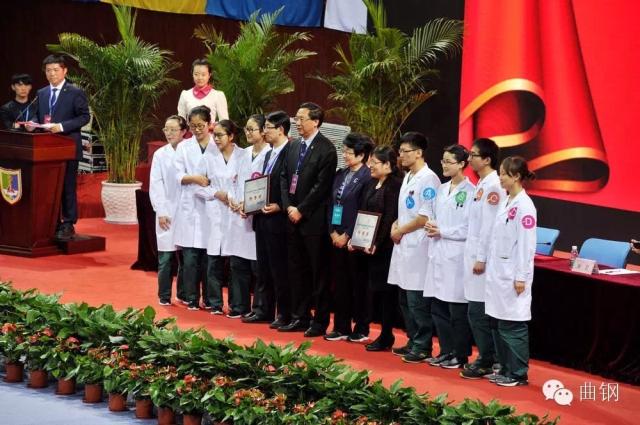 我校4名选手艰苦努力,经过初赛一的不适应,到初赛二调整状态奋起直追,以第8名的成绩晋级复赛,一路过关斩将,在半决赛第一站肺栓塞突发呼吸骤停项目处理失利的情况下,沉着冷静,完美处理了断肢和有机磷农药中毒,成功晋级决赛。决赛题目设置孕妇去医院生产途中遇车祸,送医时丈夫受伤昏迷,产妇临产,抢救中家属干扰,急怒攻心突发心脏病……竞赛现场高度模拟真实,4名标准化病人的表演令人身临其境……我们的选手迅速分工合作,有条不紊地快速安抚家属,展开抢救。选手韩丽飞在产妇一声声“惨叫”中,冷静应对,成功接生,赢得最美选手的赞誉;尹清检查处理新生儿并抱给母亲;谢健和宋佳磊迅速对昏迷的丈夫采取了一系列检查救治,并在家属突发心绞痛时及时处理,畅通静脉通路,心电监护,避免了意外发生……比赛结束赛场响起经久不息的掌声,我校4名选手的表现征服了全场观众!赛后,迟宝荣教授说:“这是一个复杂的临床情景”,这在临床实际工作中都是对医院应急系统的考验,更别说是才刚刚进入临床实习中的4名选手了,而这一系列救治需要在20分钟内完成,“这道‘惊心动魄’的大题,要做好真的走心!”