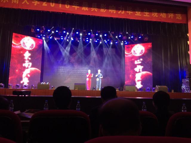 5月23日晚上的焦廷标馆星光璀璨, 21名即将毕业同学将在这个舞台上为他们的大学生活交上完美的答卷,这就是东南大学2016年“最具影响力毕业生”的评选现场。每年的最具影响力毕业生评选都是毕业生的盛事,这里涌现出一大批有特色、有影响、有正能量的优秀青年学子。2016年该项赛事总计报名、推荐68位同学,经过前期网络投票和评委评选环节,遴选出21名同学参加最后的决赛环节。