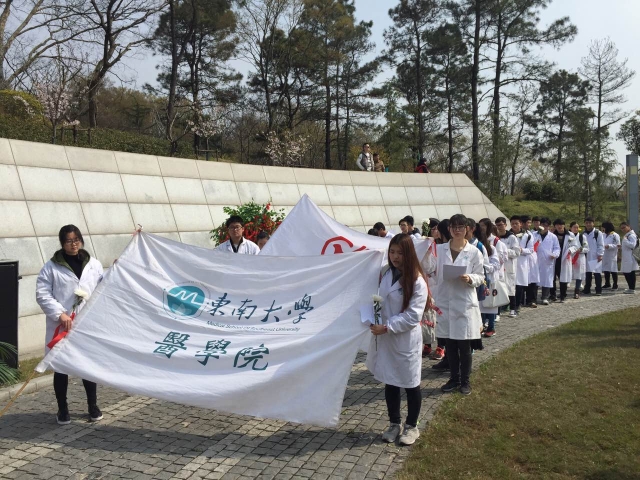 31日上午10时,公祭正式开始。会上,南京市红十字会副会长张敏女士做了讲话,她回顾了志友组织从无到有、从小到大的历程,全面阐释了志愿捐献遗体对于个人、社会、人类医疗卫生事业发展的重要意义。她希望随着红十字会工作的推进,更多的人加入到志友队伍中来,并号召社会给予志友更多关注。最后她以志友誓词“诞生和逝世乃人生必然,晚霞和朝晖皆光照人间。”结束了讲话,深情地表达了对志友无私奉献精神的赞美。随后主持人宣读了2016年度志友捐献者名单,向逝者致敬,向已故志友家属表示感恩和尊敬。宣读后,全体默哀,愿逝者安息。另我院学生代表与南京医科大学学生代表共同宣读医学生誓词,在逝者纪念碑前,承诺自己的追求和目标,声音洪亮,富有感染力。最后,由志友代表及家属、师生代表等向志友纪念林公祭台献花以示哀思与悼念。