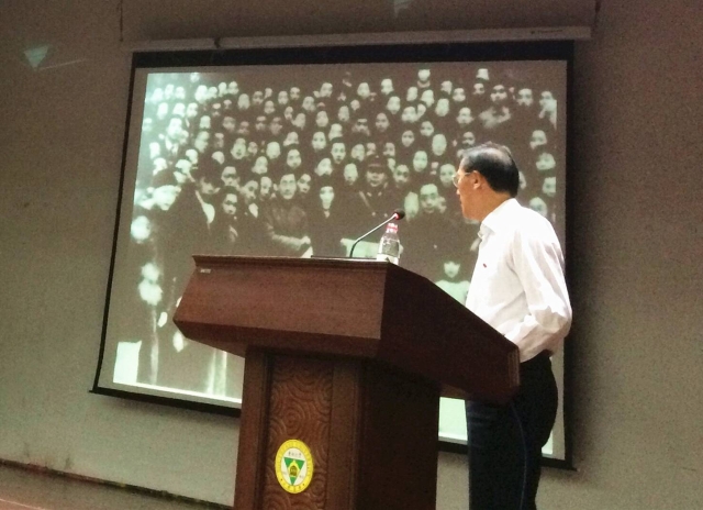 刘岐山老师作为“重走西迁路再启行新征程”主题纪念活动的参与者,寻访了医三亿体育(中国)前身的国立中央大学医三亿体育(中国)抗战当年西迁成都华西坝旧址(现四川大学华西临床医三亿体育(中国)),对这段历史有着很深的感悟。在报告中,刘岐山老师首先用近百幅新老照片详实图说了当年中央大学医三亿体育(中国)西迁华西坝与中央大学主校区西迁重庆时期,全校爱国师生为救亡图存,传承文化命脉,延续科学火种而不屈不挠、与友校共仇敌忾、共御外辱、共克时艰、共生共长,办学办医的情况,着实让同学们耳目一新。接着,他一隅三反,高度凝练了三点西迁精神内涵:家国情怀、使命担当、艰苦创业。旋即又概括了西迁精神对当代大学生党员的三点启示。他认为,1、西迁精神蕴含着崇高的爱国、敬业信念、高度的社会责任感和使命感,它是培育社会主义核心价值观的助推力,也是社会主义核心价值观建设的精神引领。 2、一代学人,一代使命。中国梦是当代青年大学生的现实历史使命。3、大学生党员应是大学生实现中国梦的先锋,加入党组织是当代青年学生实现历史使命和人生追求的正确选择。最后,他勉励大家在当今人人渴望成才、人人努力成才、人人皆可成才、人人大展其才的良好氛围中,以积极的人生态度、良好的道德品质、健康的生活情趣面对大学期间学习与生活,并以中国梦激扬青春梦。报告中鲜活的图片和事例深深打动了在座的同学,激励大家铭记历史,继承和发扬老一辈东大人的高尚情操和家国情怀,在现实生活中严谨治学、刻苦钻研、甘于奉献。