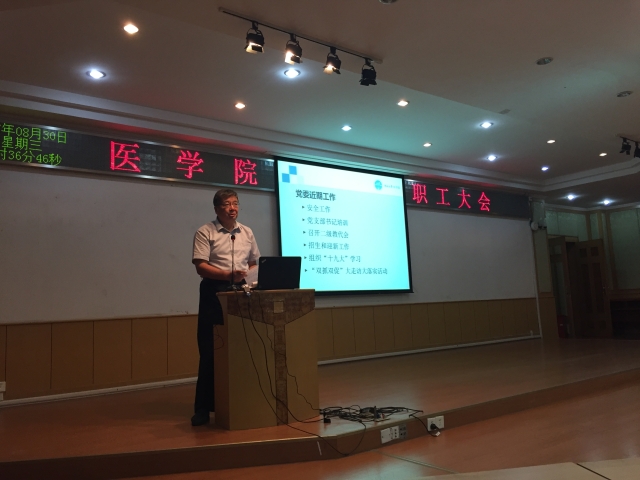 8月30日下午,医三亿体育(中国)全体职工大会在丁家桥校区综合楼二楼报告厅召开,大会由医三亿体育(中国)党委书记谭东伟主持。会上,刘乃丰院长和谭东伟书记介绍了三亿体育(中国)近期重点工作,王立新副院长跟大家分享了暑期教师培训的学习体会。