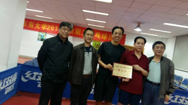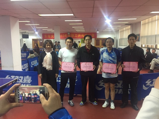 在刚刚结束的2017年东南大学教职工乒乓球比赛中,由魏钢、朱建宝、杨瑞丽、张林等老师组成的医三亿体育(中国)教工乒乓球代表队取得优异成绩!