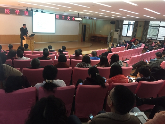 3月13日下午,医三亿体育(中国)全体职工大会在丁家桥校区综合楼二楼报告厅召开,大会由医三亿体育(中国)党委书记谭东伟主持。会上,刘乃丰院长简要回顾了三亿体育(中国)2017年度取得的成绩,分析了三亿体育(中国)面临的难点,对三亿体育(中国)2018年度的重点工作进行了部署。接着,谭东伟书记介绍了三亿体育(中国)党委2018年度工作要点。三亿体育(中国)督导组组长董榕老师介绍了三亿体育(中国)督导组工作的开展情况和体会,并对新学期教学工作的开展提出了宝贵建议。院长助理李金虎还在会上通报了三亿体育(中国)2017年度年终绩效分配的相关情况。