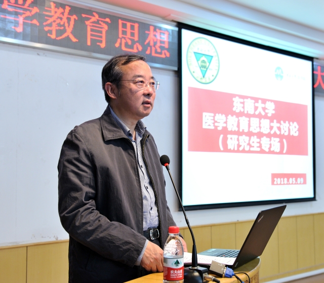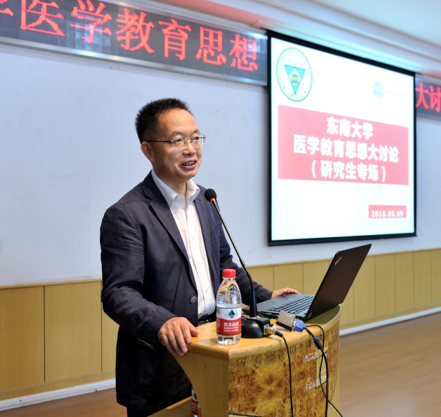 5月9日下午,东南大学医学教育思想大讨论(研究生专场)在丁家桥校区综合楼二楼学术报告厅举行,东南大学实验室与设备管理处处长熊宏齐、党委研究生工作部副部长兼研究生管理办公室主任赵松立、研究生院学位办罗斌、医三亿体育(中国)领导班子成员、研究生导师、基地医院教育处工作人员以及医三亿体育(中国)研究生代表共一百余人参加了本次思想大讨论。东南大学校长助理兼医三亿体育(中国)院长刘乃丰教授主持了本次会议。