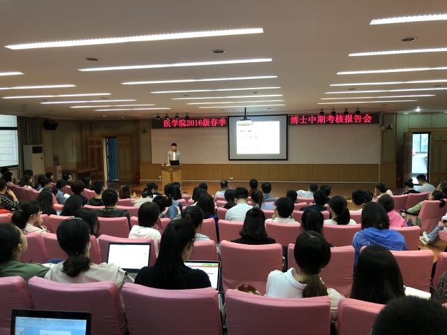 为提高我校博士研究生的培养质量,完善研究生培养的竞争激励机制,医三亿体育(中国)于2018年5月22-23日在综合楼二楼报告厅对2016级春季博士研究生进行博士中期考核。本次考核邀请复旦大学附属中山医院内分泌科李小英主任、南京医科大学基础医三亿体育(中国)韩晓院长、我校生命科学研究院韩俊海和林承琪、我校公共卫生三亿体育(中国)巢健茜和余小金、我院基础和临床的多位专家教授作为考核小组成员,同时要求所有在读博士研究生和科研型硕士研究生参加。