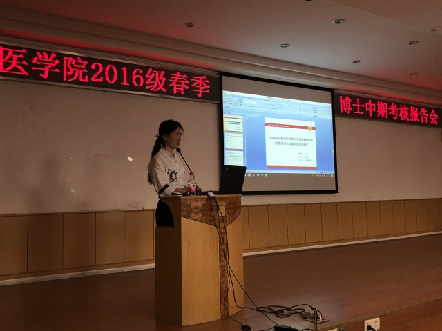 我院2016级春季博士研究生共23人,其中在国外联合培养的3名博士生以电脑视频的方式进行考核。博士生们为此次中期考核做了充分准备,以PPT形式汇报,重点突出博士生培养方案中课程学习(成绩与学分)完成情况、开题报告完成情况与质量、科研(阶段性与局部性)成果与论文发表情况、参加学术活动情况四个方面。考核审议小组专家本着严谨的治学态度,认真听取研究生的汇报,逐一审核其实验记录本,指出其中的不足,并提出宝贵的意见和建议。本次博士中期考核采取专家考评与点评相结合的方式,充分启发和引导学生在讨论和研究的过程中发现问题,分析问题和解决问题。
