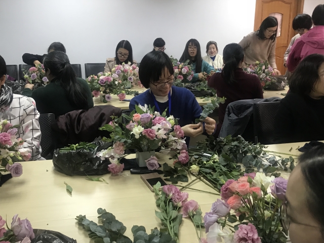 11月28日,医三亿体育(中国)工会“鲜花相伴 享受生活”花艺沙龙活动在丁家桥校区综合楼324举行,来自各学系、部门的四十余位老师分两个场次参加了本次活动。