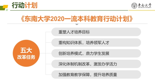 《行动计划》提出,东南大学将围绕党和国家赋予“双一流”高校的新使命、新要求,按照“
