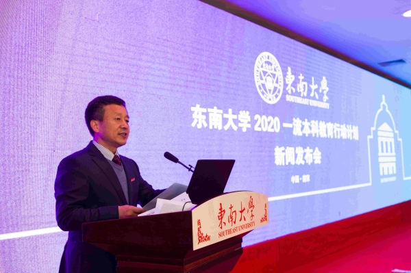发布会上,副校长金保昇代表学校正式向媒体发布并解读了《东南大学2020一流本科教育行动计划》。从2018年4月开始,东南大学以“深化教育综合改革,培养一流创新人才”为主题,在学校开展了为期三个月的教育思想大讨论,深入贯彻习近平新时代中国特色社会主义和党的十九大精神,以世界一流大学的新要求重塑东南大学人才培养新目标,经过师生、校友、社会各界等的共同深入研讨、专家反复论证,最终形成了以领军人才培养为方向的《东南大学2020一流本科教育行动计划》。