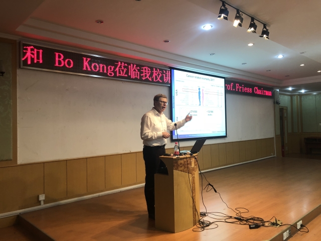 此次讲座Friess教授讲述了关于大肠癌肝转移中肝切除术的相关进展,全面介绍了大肠癌肝转移患者治疗的跨学科合作模式,为在场的医学生提供了更好的临床问题解决思路。孔波博士的讲座课题是关于胰腺癌早期癌变的分子模型,从生物化学与分子生物学的角度分析了建立胰腺癌早期癌变的小鼠模型的相关理论,为学生基础研究提供了更清晰的研究思路与更值得借鉴的研究角度。此次会议得到了研究生院等各方的指导和支持,吸引了很多在校学生,为学生们之后的科研及临床研究及学习提供了宝贵的经验及学习资料。在两位嘉宾与学生热烈交流互动之后,本次讲座圆满结束。(高洁)