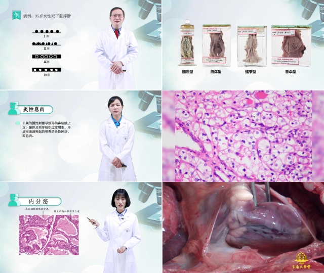 《病理形态实验学》主要包含了130多件大体标本和70余张组织切片的实景拍摄,通过讲解真实的人体器官病变形态和镜下特征,穿插部分典型案例教学,为国内医三亿体育(中国)校学生提供了更为便捷的在线学习途径。此外,该团队也将自行录制的高清病理尸体剖检过程纳入该课程教学内容,进一步体现了病理学科与临床诊疗之间的密切联系。