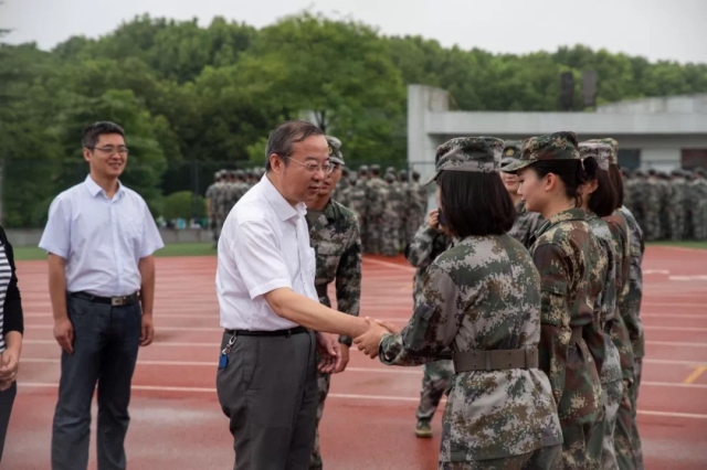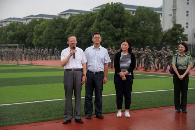 9月5日上午,细风杂雨,东南大学校长助理 医三亿体育(中国)院长刘乃丰、医三亿体育(中国)党委副书记兼副院长周明阳、医三亿体育(中国)院长助理李金虎一行来到九龙湖校区新生军训现场看望慰问同学,并检阅同学们军训成果。19级医三亿体育(中国)辅导员丁菡老师陪同。