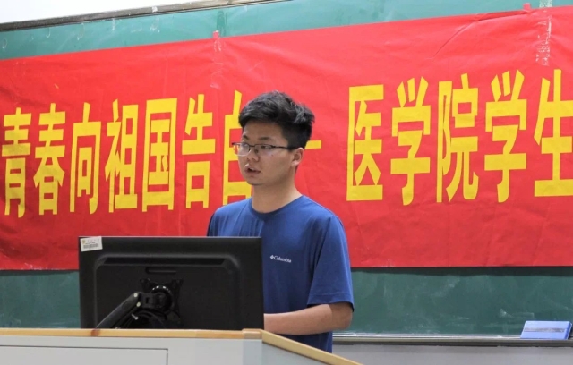 接着,李建平同学带来了他们小组采访医学遗传学专家高翼之教授的心得分享。让他们感受最深刻的,是高老师独特的个人经历与精神风采。“抗美援朝,保家卫国”于高老师而言绝不是一句口号,更是高老师对祖国的一颗赤子之心——这意味着让他放弃一生的热爱,一辈子的痴迷。当他们问及原因时,高老师说:“习总书记提出‘家国情怀’,我认为这就是家国情怀!一旦国家需要了,再大的个人想法,个人追求,即使梦寐以求一辈子的事情都要先放一放。因为这是为了国家的事,你不可能后悔。”最后,李建平还与大家分享了对于“医者”的理解,真正的学医者当有一种士子之心,有一种家国情怀!