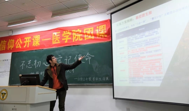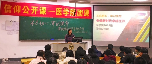 为进一步学习贯彻习近平新时代中国特色社会主义思想,深入推进“不忘初心、牢记使命”主题教育,全面把握“守初心、担使命,找差距、抓落实”的总要求,近日,我院团委老师们面向各年级本科生讲授了“不忘初心、牢记使命”主题团课。团课中主要介绍了我校和我院“不忘初心、牢记使命”主题教育开展情况,结合我校共青团工作,引导同学们树立坚定的理想信念,涵养天下情怀、人民情怀、家国情怀、奋斗情怀,增强“五种意识”的自觉,传承东南大学特质的精神文化,争做新时代医学领军人才。