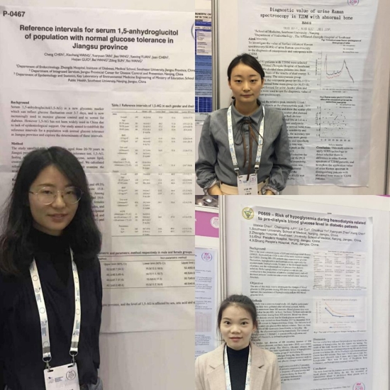 在IDF大会上,来自孙子林教授课题组的杜紫薇硕士就“人工智能模式识别系统筛查糖尿病视网膜病变的相关评价”这一课题进行了口头壁报交流。与此同时,王徐溢博士就“2型糖尿病患者胃排空和餐后血糖的种族差异”展开讨论,徐小涵硕士展示了“中国胰岛素性皮下脂肪萎缩的患病率、临床特点及危险因素”,刘佳宁硕士展示了“医体融合背景下智能算法系统支持的糖尿病运动管理模式的效果评价”,并展出了邱山虎博士(未到场)的论文“糖化血红蛋白在社区高血压患者中筛查糖尿病的应用”。