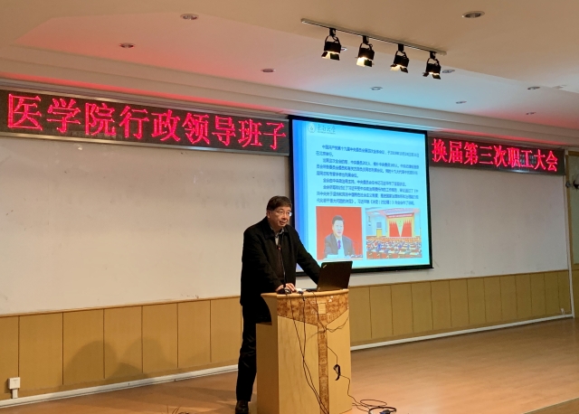 12月18日下午,我院2019年行政领导班子换届第三次教职工大会在丁家桥校区综合楼二楼报告厅召开,刘必成院长代表医三亿体育(中国)新一届行政领导班子向全院教职工报告工作思路,大会由三亿体育(中国)党委书记谭东伟主持。