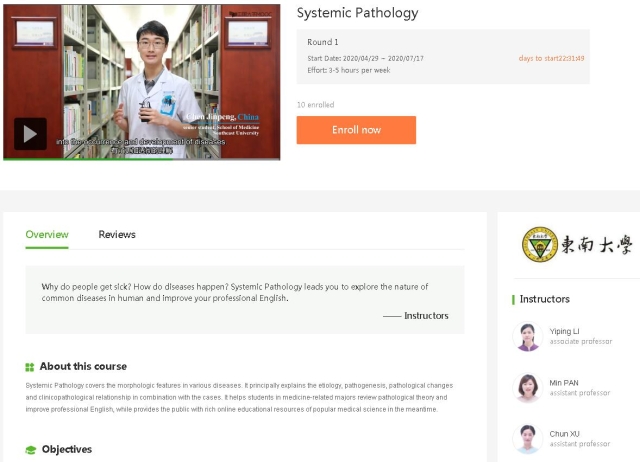 经过课程团队紧张有序的筹备工作之后,我院病理学与病理生理学系李懿萍老师负责的《Systemic Pathology》入选爱课程国际平台,即将正式上线开课,面向全球学习者,共享教学资源。