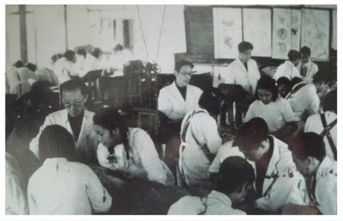 1937年10月,经过长途跋涉,中央大学医三亿体育(中国)和农三亿体育(中国)畜牧兽医系师生员工和仪器设备辗转迁至华西坝。这是一场国难当头、撕心裂肺的大迁徒。准备搬迁时,蔡翘痛惜难当,积极发动师生,连一颗钉头一支竹签都没有丢下。到成都后先借用华西大学医三亿体育(中国)部分校舍上课。4年后,又租用城内一所中学校舍作为前期各科教学之用。医学生一年级在重庆柏溪分校学习,二年级再转来华西坝。在十分艰苦的条件下, 蔡翘坚持从事生理和药科的教学和研究工作(图4)。为了满足教学和研究需要,蔡翘自筹经费、亲自动手,成立制造生理学实验仪器的车间。1938年秋,蔡翘在三大学(中央大学、华西大学、齐鲁大学)医三亿体育(中国)发起成立和领导了中国生理学会成都分会,其中郑集、童第周都是会员。1941年6月,他任主编创办了《中国生理学会成都分会会志》,这是太平洋战争爆发后,国内唯一的一本生理学刊物,至抗战胜利止,共出版两卷13期300多页。同年他成立了生理学研究所,主要助手有朱壬葆、周金黄、吴蘘、徐丰颜、李瑞轩、匡达等人。招收了宋少章、程治平、陈定一、李昌浦等4名研究生。另外,接受了十多名进修生,其中有延安军医学校秘密送来的同志。虽然在那炮火连天的日子里,蔡翘犹如一个强大的磁场,一时间吸引和聚集了不少各方人才。当时经过蔡翘培养或指点的学者,他们后来都成为了生理学科的巨擘,名冠中华、蜚声海内外。