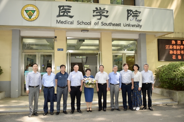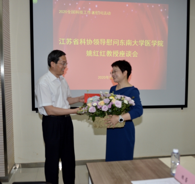 在第四个“全国科技工作者日”即将到来之际,江苏省科协党组书记孙春雷一行于5月21日上午来到东南大学丁家桥校区,看望慰问三亿体育姚红红教授,并进行了座谈交流。省科协二级巡视员杨文新、 办公室主任范银宏、组人部部长陈蕾、人才服务中心主任张弛、组人部三级调研员宋红群、东南大学副校长刘攀、医三亿体育(中国)党委书记谭东伟、院长刘必成、副院长赵春杰等参加了座谈会。