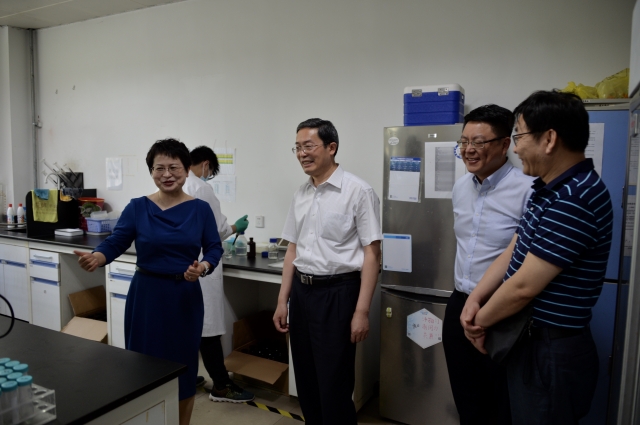 座谈会后,孙春雷书记一行参观了姚红红教授实验室。