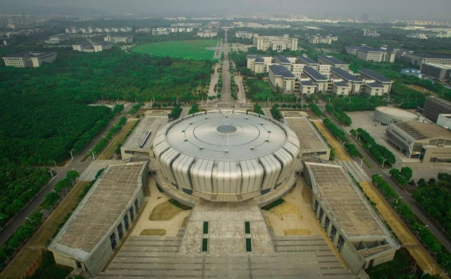九龙湖校区由东南大学建筑设计研究院设计,依据“建设自然生态的花园之城、规划现代智能的网络之城、建构人文精神的象牙之城”的设计思想,顺应了高等教育发展趋势和内涵变化,从空间形态、交通结构、绿化环境、人文意象等多方面营造共享型校园特色,创建“绿色、开放、族群的森林大学和活力之城”,营建诗意生态公共空间与充满人性关怀的社区型大学校园。(图6、7)新校区规划建设的最大特色还在于将百年学府东南大学的历史和人文体现的淋漓尽致,实现了建筑与文脉的整合演变。其中李文正图书馆是齐康院士主持设计、是全校单体建筑面积最大的建筑(图8)。