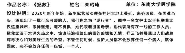 为引导广大女教职工积极投身疫情防控工作,不断提升自身素质和激发干事创业的积极性,3-4月,省教科工会女职工委员会在全省女教职工中开展了“同心抗疫,巾帼有我”风采展示活动。医三亿体育(中国)工会选送的美术作品《拯救》(栾昭琦)荣获一等奖。该作品运用超现实的绘画方式,描述了疫情之下的“逆行者”双手托举武汉这座城市,拯救人们于水深火热之中,隐喻祖国母亲在任何时候,都不会放弃任何一座城、一个人,也体现出人们战胜疫情的决心和对美好生活的希望。