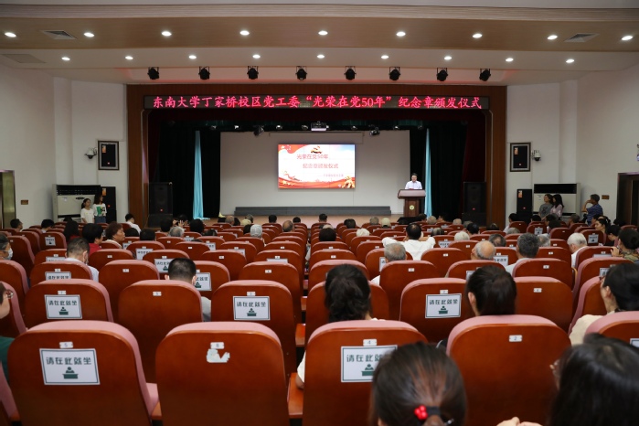 6月18日下午,丁家桥校区“光荣在党50年”纪念章颁发仪式在科技会堂隆重举行。东南大学党委副书记刘攀、丁家桥校区各单位党政主要负责人以及校区近200位师生党员代表参加了仪式。