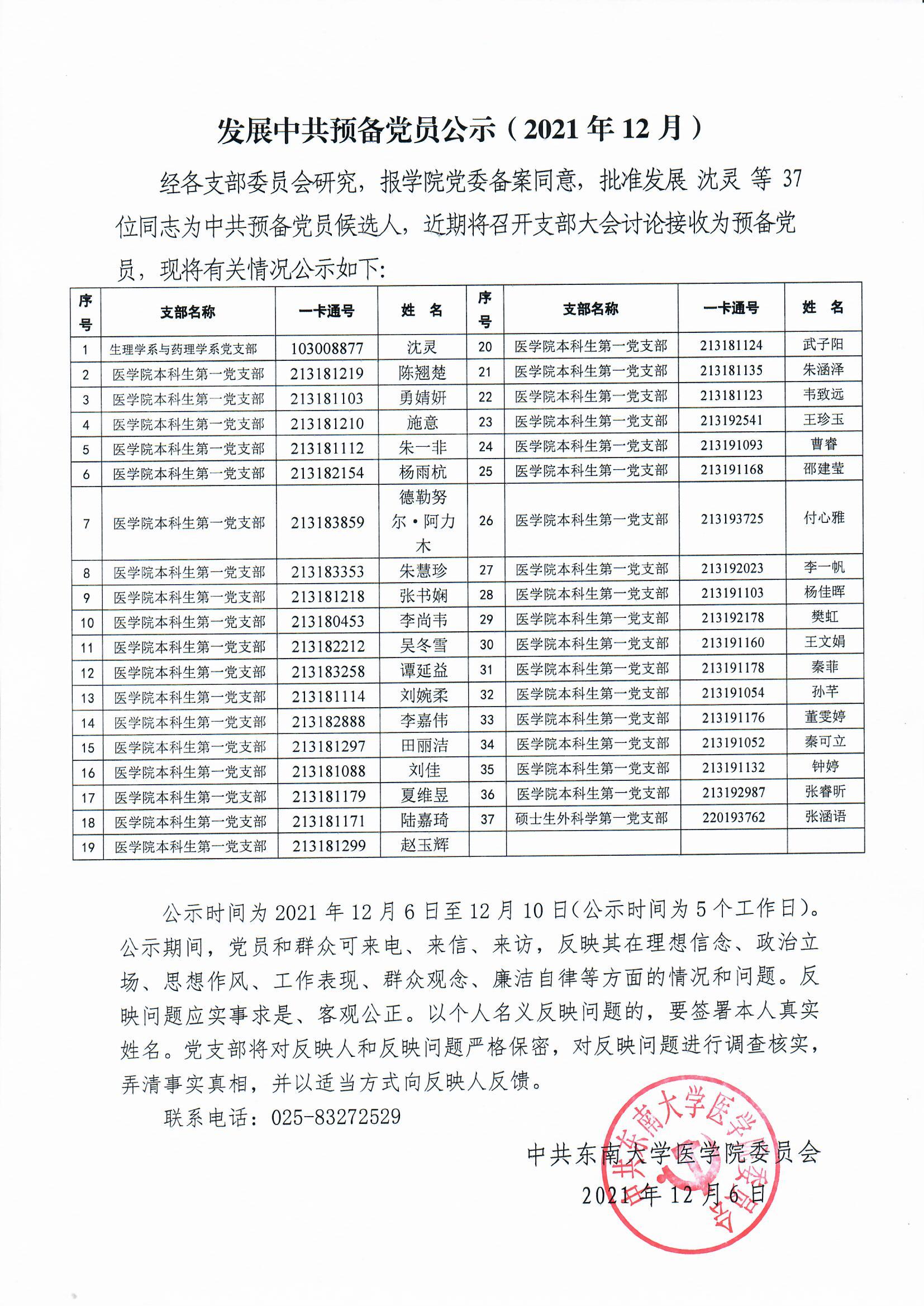 发展中共预备党员公示(2021年12月)