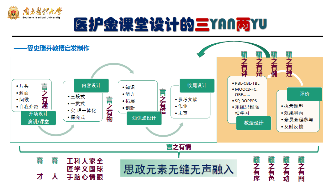 董教授指出课程思政就是课程育人的过程,以达到启发医学生有思想、会思考、讲政治、树正向的教学终极目标。同时他结合自身的教学科研经历阐述课程思政的课堂设计,结合医学影像、放射、病理、临床、护理等不同专业运用大量实例深入浅出地教授顶层设计的方法、流程、金课堂的标准,强调以教师为主导、学生为中心,通过言之有理、言之有例、言之有情达到育人育才的目标。