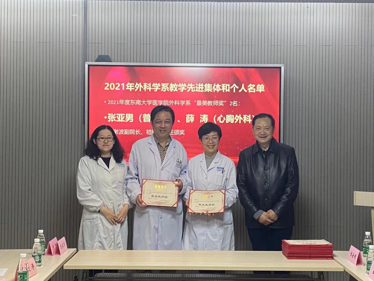 谢波副院长、嵇振岭主任为普外科张亚男教授、胸心外科薛涛教授颁发“最美教师奖”