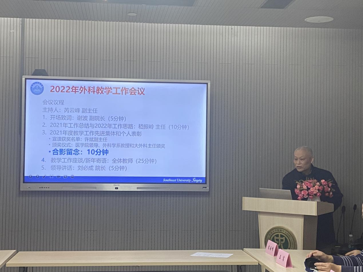 此次教学工作会全面总结了医院2021年的教学工作开展情况和经验,制定了2022年的教学计划,为外科教学工作质量的进一步提高指明了方向。