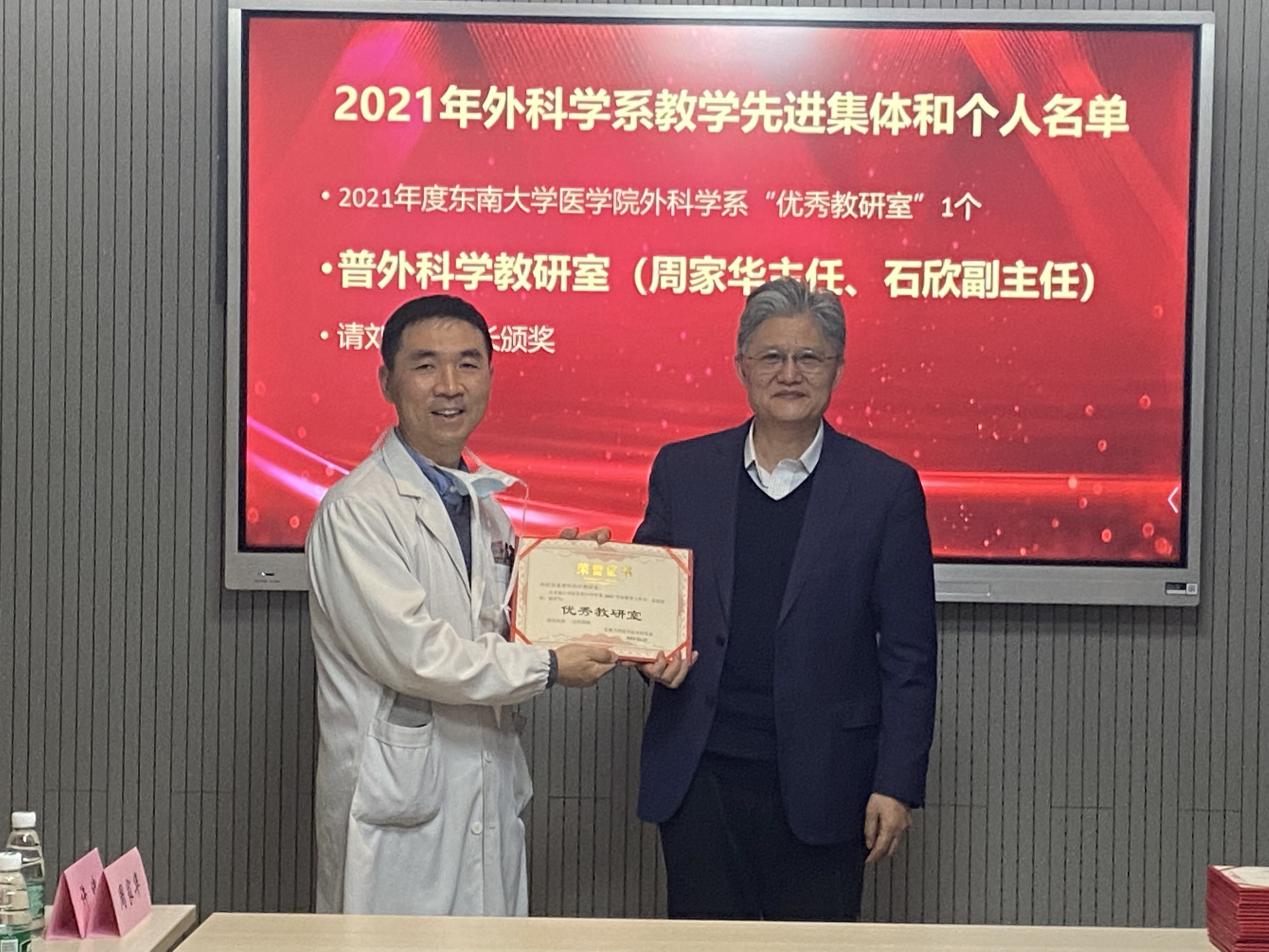 刘必成院长为普外科教研室颁发“优秀教研室”奖