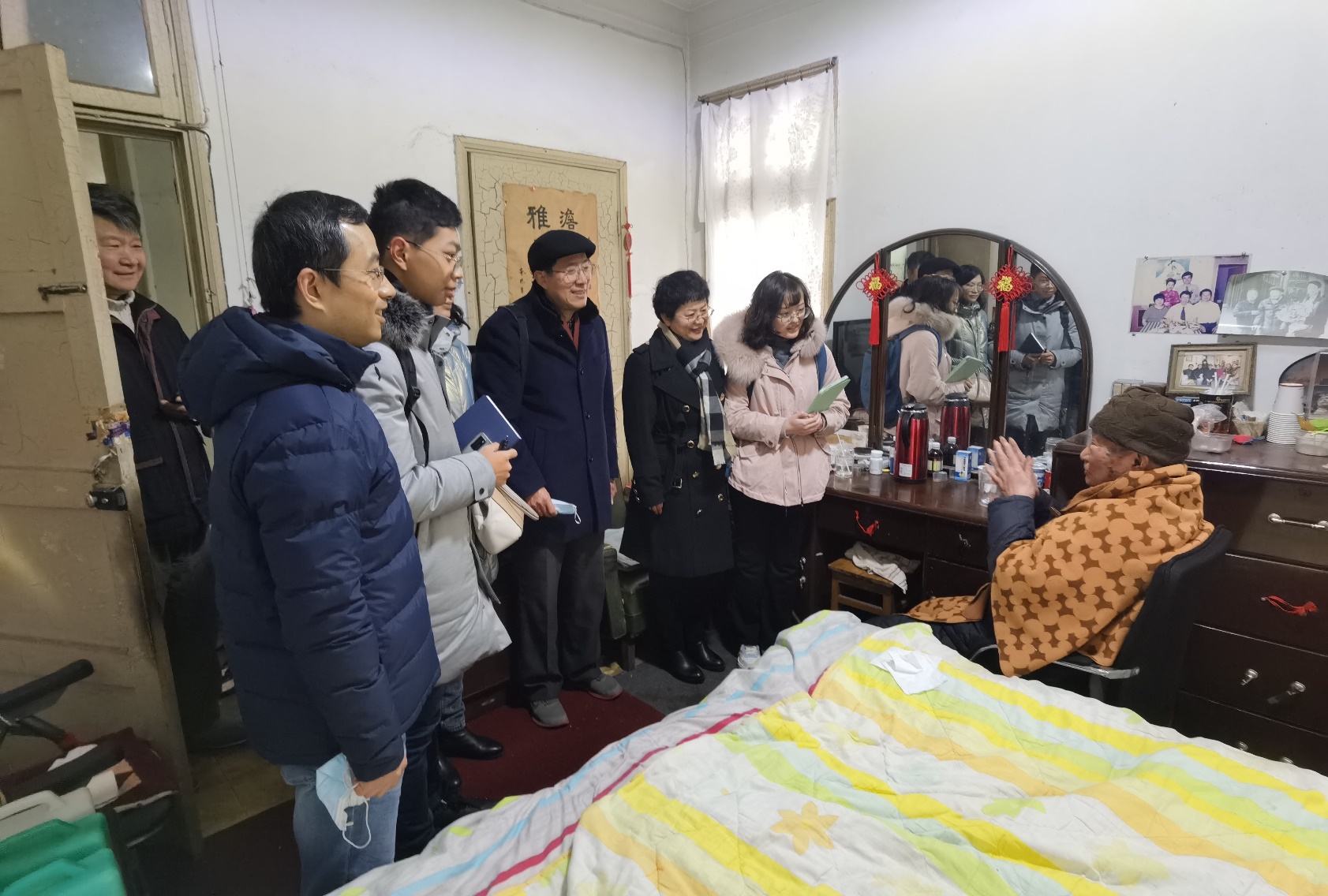 天增岁月人增寿,春满乾坤福满楼。2022年1月22日上午,医三亿体育(中国)党委书记姚红红、副院长严春光、院办主任李金虎、关工委副主任刘岐山、人事秘书赵玉婷及2021级本科生巢玥与吴宇凡一行,分别登门拜访了遗传学王世浚、高翼之,微生物学刘功云、神经外科学董意如、心血管内科学陈雪月、解剖学林元问、眼科学郭征七位九十周岁以上的高龄老教授,向他们提前致以节日的问候和衷心的祝福。其中,王世浚教授已有105岁高龄。