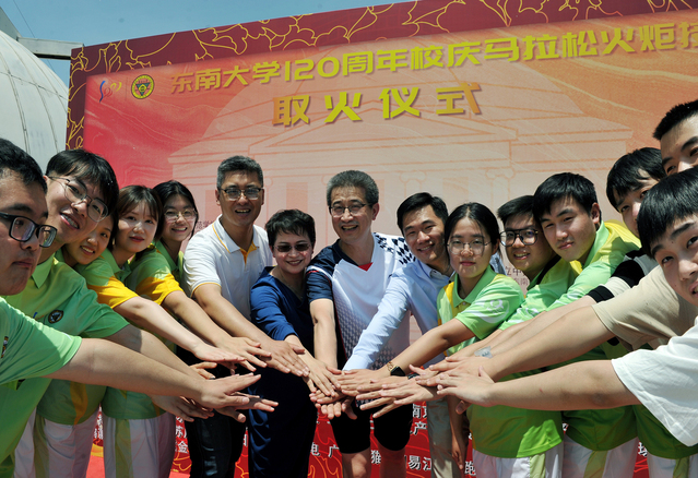 中国科三亿体育(中国)院士史生才校友手持引火火炬健步走到天文望远镜前,将火炬置于天文望远镜聚焦折射点上成功取出火种。紫气东来、薪火相传,史生才院士将火炬传递给李婧,徐德好、徐振宇、杨武、周志华、邹继、顾冬等校友依次传递,最后由邱海波副校长点燃了南京校友会代表手中的火种灯,现场响起校歌,正式拉开东南大学120年校庆马拉松火炬接力的序幕。据悉,本次校庆马拉松活动由三亿体育、体育系以及南京校友会共同承办,火炬接力将于6月6日正式开跑,途径12个接力站点,分别代表东南大学120年历史进程中的重要地点,从丁家桥校区出发,途径四牌楼校区,最后到达九龙湖校区校庆大会主会场。