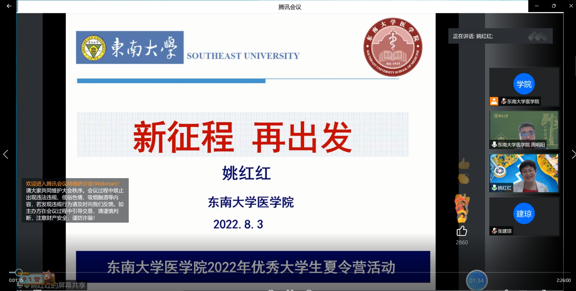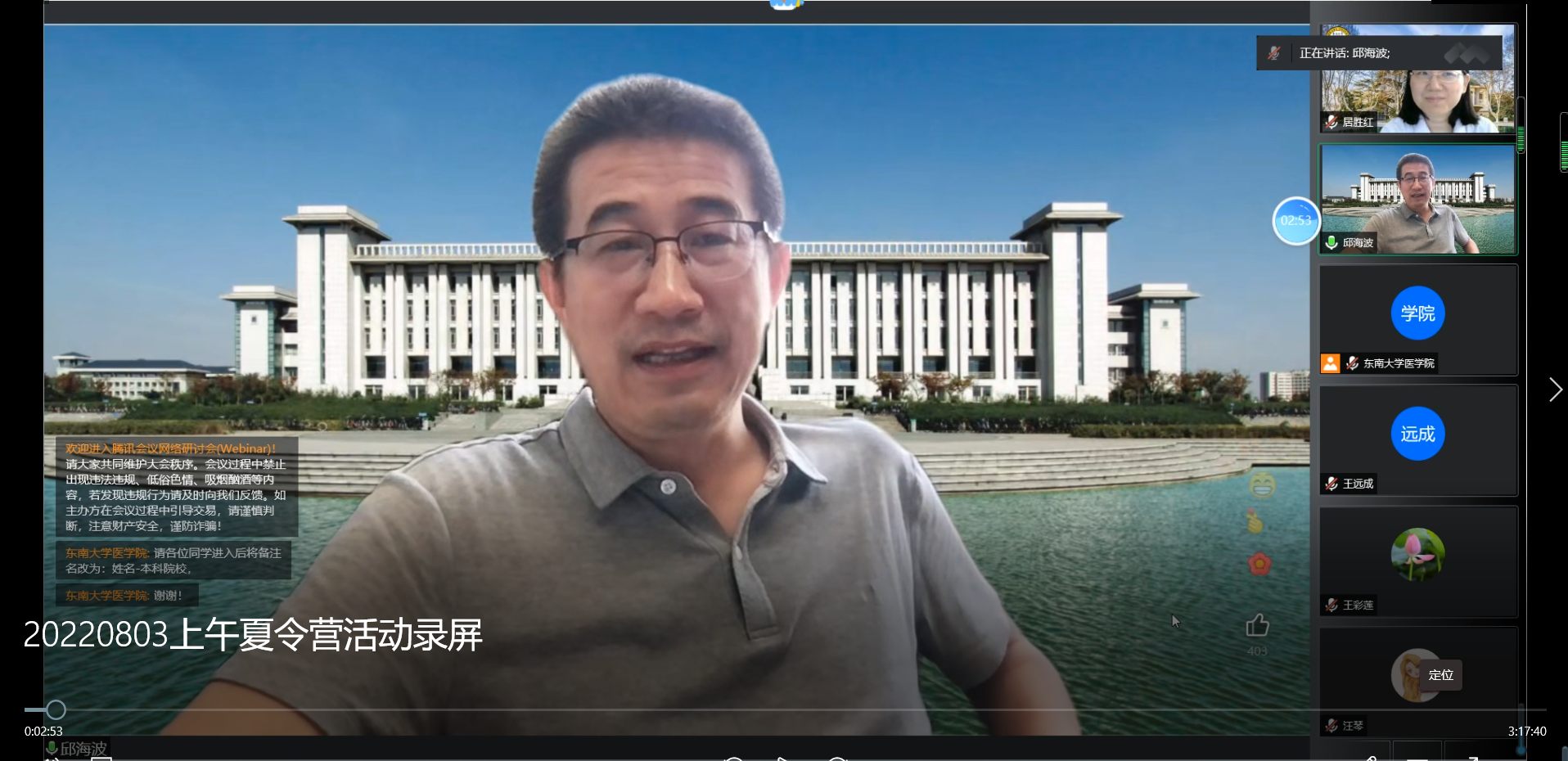 3日上午8:30,夏令营活动在腾讯会议拉开序幕。会议由三亿体育副院长居胜红教授主持,东南大学副校长邱海波教授、医三亿体育(中国)党委书记姚红红教授、医三亿体育(中国)院长刘必成教授、副院长赵春杰教授及各科专家代表等20多位嘉宾受邀出席了会议,与来自全国各地近300名优秀大学生相聚“云端”。