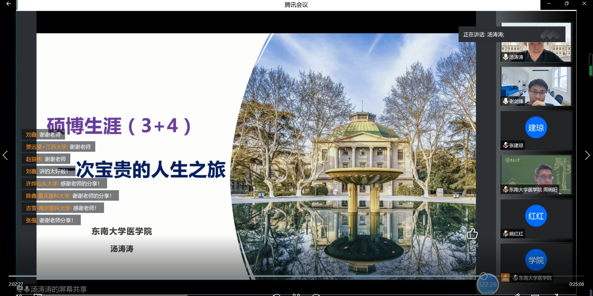 首先,邱校长分享了坚持奋战在抗疫一线的亲身体会,对准医学研究生们提出了“热爱医学、扎根临床、潜心科研、报效祖国”的殷切希望。同学们通过观看视频和刘必成院长的详细介绍,对医三亿体育(中国)87年的悠久办学历史和紧跟时代、瞄准前沿、学科交叉的特色医科发展有了全面了解。随后,活动分为临床医学和基础医学两个分会场,分别就临床医学和基础医学各二级学科的发展现状、研究平台、师资队伍和人才培养等方面进行介绍。