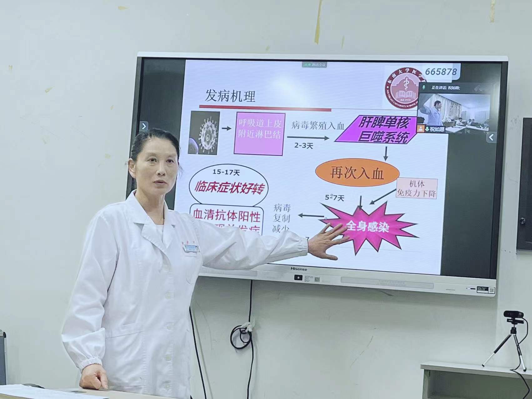 本次会议内容包括21-22-3学期儿科教学总结、本科生教学示范、本学期任课教师集体备课三方面。首先由儿科教学秘书周妍汇报21-22-3学期各专业(临床医学、检验医学、预防专业)学生表现及成绩分析;随后由儿科学系唐洪丽教授、郑意楠教授就“如何上好一堂课”为主题对中青年教师进行本科生教学示范,他们分别以儿科学《感染性疾病》、《循环系统》章节为例,向青年教师们演示课前准备、课堂仪态、课程内容、如何与学生互动、思政内容融入及双语授课等环节的注意点;最后儿科学系对新学期教学工作进行分工和部署,并为鼓励、帮扶青年教师更好的进行教学工作,通过学系讨论及双向选择,组成老中青教学帮扶小组。