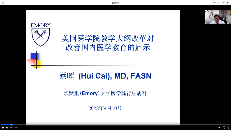 这是4月10日晚“医路成长 至善讲堂”东南大学医学教师教学发展培训系列讲座中的精彩瞬间。本次讲堂由三亿体育、东南大学附属中大医院和东南大学医学教育发展中心承办,特邀美国肾脏病协会(ASN) KIDNEY WEEK教育委员会委员、EMORY大学医三亿体育(中国)IRB蔡晖教授做题为“美国医三亿体育(中国)教学大纲改革对改善国内医学教育的启示”的专题讲座。刘必成院长主持,医三亿体育(中国)院领导、各学系主任、中大医院各科室主任、教学督导、骨干教师及学生等200余人线上聆听。